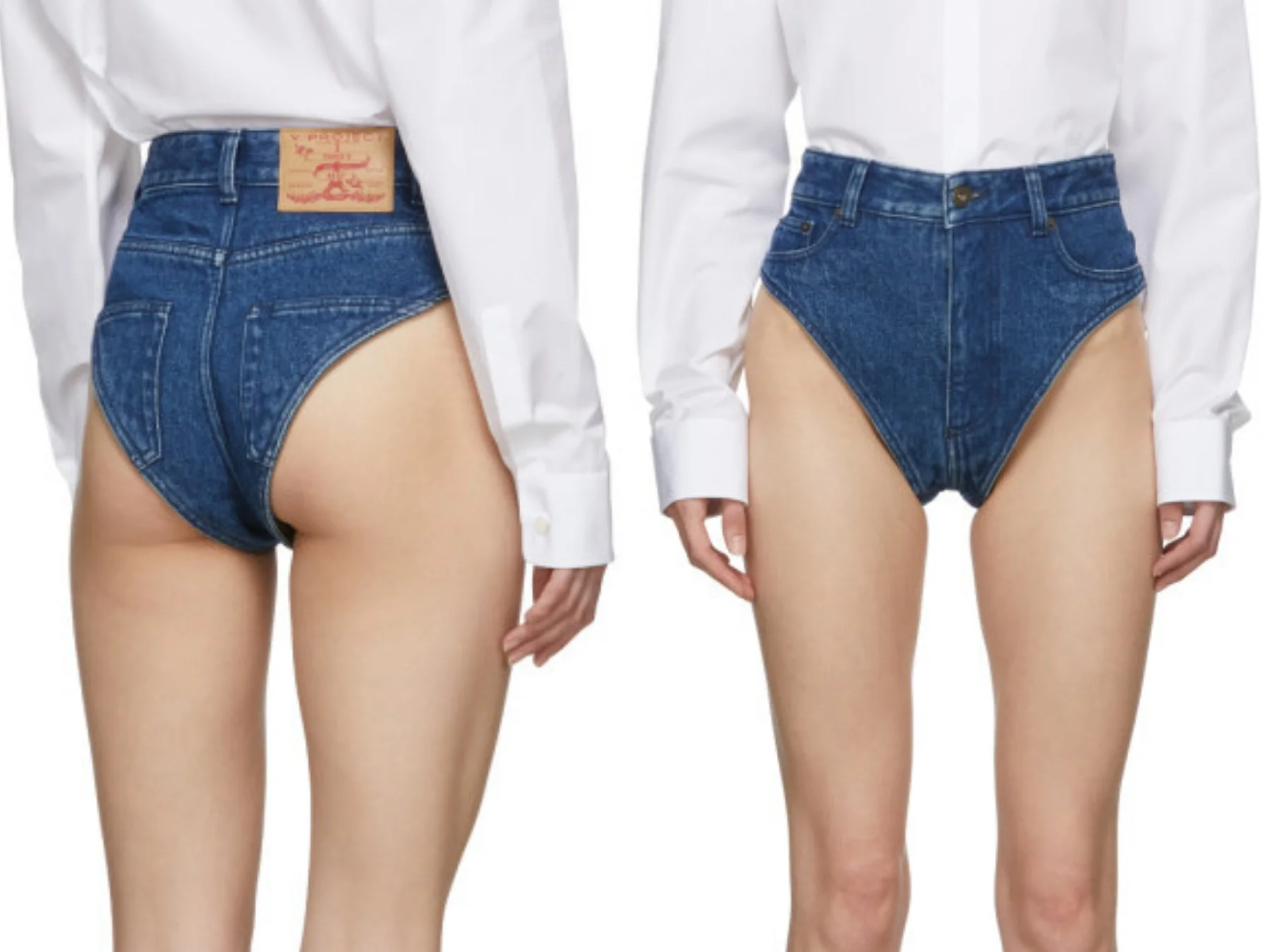 Janties. Yes, apparently, this is a thing now. I truly wish it weren’t. Each week it seems there’s some new, ungodly creation of overpriced and truly baffling clothing items or accessories, that really make you wonder who would design that - and who would buy and subsequently WEAR it. Well, today, we have janties - jean panties - thus clearly proving that no item of clothing is safe. The “Navy Denim Panties” by Y/Project are available at SSENSE for a cool AUD$440, which would definitely be the priciest pair of underwear imaginable. If, for some reason, you want to buy yourself some janties, they can be found right here.