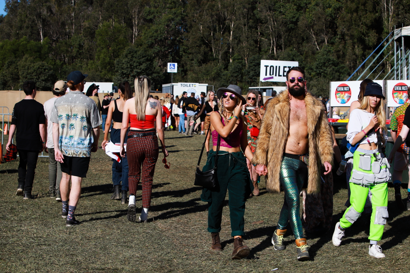 Rocking up in squad outfits - all bedecked in leopard print, or pastels, or shimmering gold - was the go for large groups of festivalgoers, but there was no sense of exclusivity between crews. In bathroom lines, tightly packed mosh pits, waiting at food trucks or browsing the clothing stalls, conversations were easily started and new friendships were made to the strains of "hey dude, that outfit is sick".